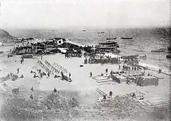 Floating depots were organized with medical, water, ammunition and food supplies, to be dispatched ashore when needed. The barges used in this landing were the surviving "K" boats from Gallipoli, upgraded in Spanish shipyards.