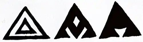 In Central and West Asia, amulets (often in the form of triangular packages containing a sacred verse) were traditionally attached to the clothing of babies and young children to give them protection from forces such as the evil eye.[67][68][69] Triangular amulet motifs were often also woven into oriental carpets such as kilims. The carpet expert Jon Thompson explains that such an amulet woven into a rug is not a theme: it actually is an amulet, conferring protection by its presence. In his words, "the device in the rug has a materiality, it generates a field of force able to interact with other unseen forces and is not merely an intellectual abstraction."[70]