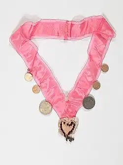 Regional traditions surrounding the birth of children often included amulets to ward off the devil, the evil eye, or demons such as Lilith. So-called miracle rabbi (Ba’al Shem) would be responsible for writing text amulets and conjuring up the names of God and protective angels. Midwives would also create amulets, often filled with herbs, to protect mothers and their young children.[30] In Southern Germany, Alsace and areas of Switzerland, young Jewish boys wore textile neckbands or collars for their Brit Milah. Coins or coral stones on these neckbands were meant to distract the evil eye away from the boys, thus serving as a form of protection. This practice continued until the early 20th century.[30]