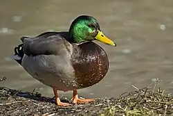 Anatidae is a large proportion of the 3% of bird species to possess a penis,[5][6] though they vary significantly in size, shape, and surface elaboration.[7] Most species are adapted for copulation on the water only. They construct simple nests from whatever material is close at hand, often lining them with a layer of down plucked from the mother's breast. In most species, only the female incubates the eggs. The young are precocial, and are able to feed themselves from birth.[3] One aberrant species, the black-headed duck, is an obligate brood parasite, laying its eggs in the nests of gulls and coots. While this species never raises its own young, a number of other ducks occasionally lay eggs in the nests of conspecifics (members of the same species) in addition to raising their own broods.
