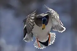 Landing mallard drake