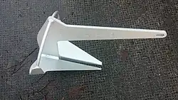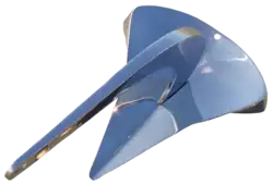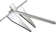 Originally designed as a lightweight anchor for seaplanes, this design consists of two plough-like blades mounted to a shank, with a folding stock crossing through the crown of the anchor.