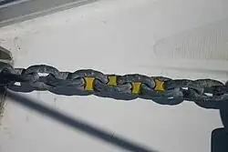 Colored plastic inserts on a modern anchor chain show the operator how much chain has been paid out. This knowledge is crucial in all anchoring methods.