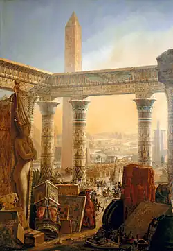 Among the many achievements of ancient Egypt are: the quarrying, surveying, and construction techniques that supported the building of monumental pyramids, temples, and obelisks; a system of mathematics; a practical and effective system of medicine; irrigation systems and agricultural production techniques; the first known planked boats;[5] Egyptian faience and glass technology; new forms of literature; and the earliest known peace treaty, which was ratified with the Anatolia-based Hittite Empire.[6] Its art and architecture were widely copied and its antiquities were carried off to be studied, admired, or coveted in the far corners of the world. Likewise, its monumental ruins inspired the imaginations of travelers and writers for millennia. A newfound European and Egyptian respect for antiquities and excavations that began in earnest in the early modern period has led to much scientific investigation of ancient Egypt and its society, as well as a greater appreciation of its cultural legacy.[7]