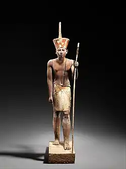 A figure wearing the red crown of Lower Egypt, most probably Amenemhat II or Senwosret II