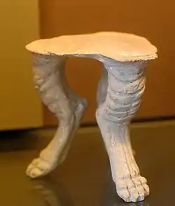 The ancient Greek custom of placing terracotta miniatures of furniture in children's graves gives a good idea of its style and design. The Greeks normally ate while seated on chairs; benches were used for banquets.[30] Tables - high for normal meals, low for banquets - were initially rectangular. By the 4th century BCE, most tables were round, often with animal-shaped legs (for example lion's paws).