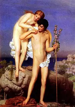The genre of bucolic poetry was first developed by the poet Theocritus.[24] The Roman Virgil later wrote his Eclogues in this genre.[25]