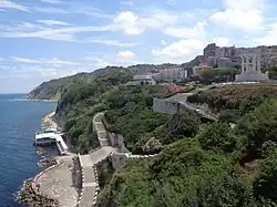 The acropolis, with the temple of Aphrodite, was located on the top of the Guasco hill, on the site where the Ancona Cathedral stands today.[12] Another temple, dedicated to Diomedes, stood on the seashore, at the end of the city's promontory.[13] Diomedes was considered the mythical oikistes of the colony.