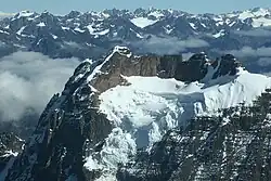 In the high Andes of Central Chile and Mendoza Province, rock glaciers are larger and more common than glaciers; this is due to the high exposure to solar radiation.[26] In these regions, glaciers occur typically at higher altitudes than rock glaciers.[27] The lowest active rock glaciers occur at 900 m a.s.l. in Aconcagua.[27]