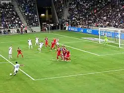 In the UEFA Euro 2008 qualifying, Andorra again lost every game.[12] The closest game was against Russia, a 1–0 defeat on 21 November 2007. Their biggest defeat was a 7–0 loss to Croatia in Andorra La Vella, which is their worst defeat in UEFA competitions[13] and matched their loss to the Czech Republic as their largest losing deficit. Andorra scored only two goals and conceded 42 in a total of 12 games.[12] In 2010 World Cup qualifying, Andorra lost all ten matches.[14] For the tournament, they scored three goals, in defeats to Belarus and Kazakhstan, and conceded 39 goals, including six in a defeat to England, the largest margin in the group.[14]