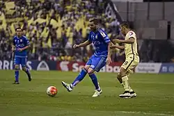 On 18 June 2015, Gignac signed with Mexican club Tigres UANL, ending rumours of alleged interest from several European teams.[73] Upon signing, he said his ambition to join the club was to win the domestic league and help his side reach the final of Copa Libertadores.[74] Gignac made his official debut with Tigres on 15 July in the away game of semi-finals of the 2015 Copa Libertadores against Brazilian side Internacional at the Estádio Beira-Rio, a 2–1 defeat. In the second leg, he scored his first goal to open a 3–1 victory, taking his team into the finals against River Plate of Argentina.[75]