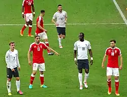 On 6 September 2013, Gignac made his first appearance for France in three years during a 0–0 draw with Georgia in qualification for the 2014 World Cup.[96] His next appearance came as a late substitute in a friendly against Portugal on 11 October 2014.[97] Three days later, he was selected to start in France's away friendly against Armenia, scoring his first international goal in five years from a penalty kick in a 3–0 win, after Paul Pogba was brought down by Varazdat Haroyan.[98] On 13 November 2015, he scored France's second goal in a 2–0 home friendly victory over defending world champions Germany, a powerful header from a Blaise Matuidi cross. He was named in Didier Deschamps' squad for their hosting of UEFA Euro 2016, making Gignac the first Mexico-based player in European Championship history.[99] He played six of their seven matches – starting only the goalless group draw with Switzerland – and was a 78th-minute substitute for Olivier Giroud in the final that the team lost to Portugal in extra time.[100] In this match, Gignac came close to securing the title for France, hitting the post in the last minute of regular time.[101] Later on, Gignac was included in the French squad for the 2020 Summer Olympics.[102]