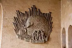 From the moment the three were grounded on 14 July, Strindberg's highly specialized cartographic camera, which had been brought to map the region from the air, became instead a means of recording daily life in the icescape and the constant danger and drudgery of the trek.[28] Strindberg took about 200 photos with his seven-kilogram (15 lb) camera over the course of the three months they spent on the pack ice, one of the most famous being his picture of Andrée and Frænkel contemplating the fallen Eagle.[29]