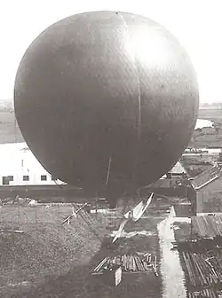 Andrée gave a glowingly optimistic account of the ease with which these requirements could be met. Larger balloons had been constructed in France, he claimed, and more airtight, too. Some French balloons had remained hydrogen-filled for over a year without appreciable loss of buoyancy. As for the hydrogen, filling the balloon at the launch site could easily be done with the help of mobile hydrogen manufacturing units; for the steering he referred to his own drag-rope experiments with Svea, stating that a deviation of 27 degrees from the wind direction could be routinely achieved.[6]