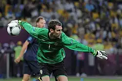Isaksson was also the first-choice goalkeeper through Sweden's disappointing qualification campaign for the 2010 World Cup in South Africa as well as the qualifying rounds for Euro 2012 in Poland and Ukraine. On 29 May 2012, national team manager Erik Hamrén announced his final 23-man squad for the Euros, including the vastly experienced Isaksson.[19] Isaksson again appeared in all three group games as Sweden failed to make it out of the group, although he did keep a clean sheet in their 2–0 victory over France in the final match.[20]
