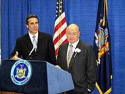 On July 23, 2007, Cuomo's office admonished the Spitzer administration for ordering the New York State Police to keep special records of then Senate majority leader Joseph Bruno's whereabouts when he traveled with police escorts in New York City.[48] The goal of the Spitzer administration was to cause political damage to Bruno.[49] Spitzer responded by accepting responsibility and apologizing to Bruno.[48][50]