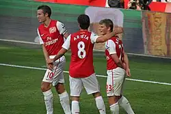 Arshavin came off the bench to score two goals in Arsenal's 2–1 pre-season victory on 1 August over Atlético Madrid in the Emirates Cup. Manager Arsène Wenger commented afterward that "[Arshavin] knows how English football works", adding, "He knows as well that now he's part of the team from the start. I believe the team knows as well how important (he is) and how big an impact he can have on the results."[32] On 26 August 2009, Arshavin scored his first UEFA Champions League goal for Arsenal in the 74th minute in a 3–1 win over Celtic. He also scored a 30-yard shot against Manchester United at Old Trafford on 29 August 2009, which was his first goal of the season although Arsenal lost the match 2–1.[33] In early December, Arshavin put in an excellent display against Stoke City, playing in an unfamiliar role as centre-forward left vacant after Robin van Persie's injury. He won a penalty which Fàbregas missed before scoring himself and later assisted the second goal, with Arsenal winning the match 2–0.[34]
