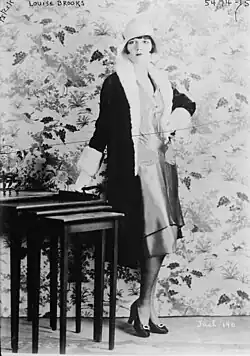 In the 20th century, starting around World War I traditional gender roles blurred and fashion pioneers such as Paul Poiret and Coco Chanel introduced trousers to women's fashion. The "flapper style" for women of this era included trousers and a chic bob, which gave women an androgynous look.[50] Coco Chanel, who had a love for wearing trousers herself, created trouser designs for women such as beach pajamas and horse-riding attire.[48] During the 1930s, glamorous actresses such as Marlene Dietrich fascinated and shocked many with their strong desire to wear trousers and adopt the androgynous style. Dietrich is remembered as one of the first actresses to wear trousers in a premiere.[51]