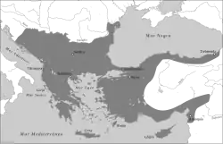 The earlier Komnenoi emperors had instituted the Komnenian system of administration, family rule, and financial and military obligations. This system allowed the empire to achieve prosperity and some internal stability. It also greatly increased the power and wealth of the landowning provincial aristocracy.[76] Aristocrats had become able to run their administrations at will, exploit common citizens,[1] and withhold funds from the central government to use for their own purposes.[76] At its extreme, this could allow for independent local governments, such as that of Isaac Komnenos in Cyprus and the later realm ruled by Leo Sgouros in the Peloponnese.[76] The power and abuses of the aristocracy was a very real issue, recognized by Andronikos, which ultimately contributed to the empire's catastrophic decline after his death.[57]