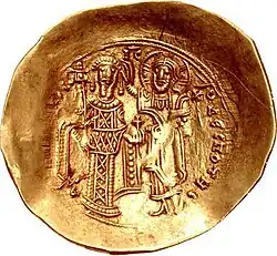 ![]() Hyperpyron of Andronikos Komnenos depicting the emperor crowned by Christ. | |