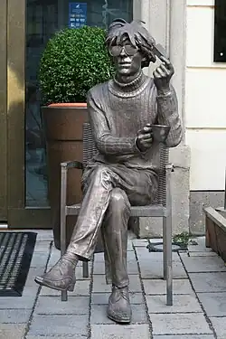 The phrase "15 minutes of fame" is attributed to Andy Warhol, summarizing his view on fleeting celebrity. It first appeared in a 1967 Time magazine article noting that Warhol predicted a day "when everyone will be famous for 15 minutes" amid the rapid rise of contemporary art and culture.[108] The concept is often linked to Warhol's "superstars," a retinue of bohemian and counterculture eccentrics Warhol surrounded himself with in the mid-1960s to early 1970s, including Baby Jane Holzer, Brigid Berlin, Ondine, Edie Sedgwick, Ingrid Superstar, Nico, International Velvet, Mary Woronov, Viva, Ultra Violet, Joe Dallesandro, Candy Darling, Holly Woodlawn, Jackie Curtis, and Jane Forth.[109][110][111] These people participated in the Factory films, and some like Berlin and Holzer remained life-long friends with Warhol. Important figures in New York's art and underground cinema scenes—such as curator Henry Geldzahler and filmmakers Jonas Mekas and Jack Smith—also appeared in Warhol's 1960s films, underscoring his ties to a wide range of artistic circles. Less widely noted was his encouragement of young collaborators who later became prominent, including writer David Dalton,[112] photographer Stephen Shore,[113] and artist Bibbe Hansen.[114]