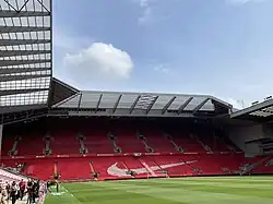 Work by contractor Buckingham Group officially commenced on 30 September 2021, with the first sod being turned by manager Jürgen Klopp.[90] The stand was expected to be completed during the 2023–24 season and would also see the relocation of the Family Park to a covered position.[91] However, on 17 August 2023, Buckingham announced it would be filing for administration, jeopardising timely completion of the new £80 million stand.[92][93] On 7 September 2023, the club took control of the project, appointing Rayner Rowen Construction to complete the stand using as many of the original subcontractors as possible.[94] In October 2023, Liverpool announced that the upper part of the new developed stand would not be open to the public "until the end of 2023".[95] On 23 November, the club anticipated half of the new upper tier would be available for a Premier League match against Manchester United on 17 December 2023.[96] Much of the stand opened for Liverpool's home Premier League game against Burnley on 10 February 2024.[97]