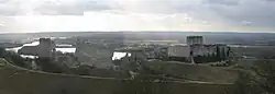 The frontiers of the empire were sometimes well known and therefore easy to mark, such as the levees constructed between the crown lands of France and the Duchy of Normandy. In other places, the borders were not so clear, particularly the eastern border of Aquitaine, where there was often a difference between the frontier that Henry and Richard claimed and the frontier where their effective power ended.[19] Scotland was an independent kingdom, but after a disastrous campaign led by William the Lion, English garrisons were established in the castles of Edinburgh, Roxburgh, Jedburgh and Berwick in southern Scotland as defined in the Treaty of Falaise.[20]