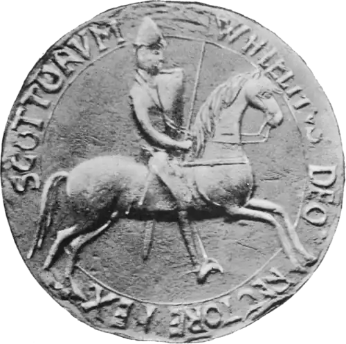William the Lion, the next king of Scotland, was unhappy with Henry since he was given Northumberland by David in 1152 and therefore lost it to Henry when Malcolm handed it back in 1157. As a part of the coalition set by Louis VII, William the Lion first invaded Northumberland in 1173 and then again in 1174; as a result he was captured at the Battle of Alnwick and had to sign the tough Treaty of Falaise. Garrisons were to be set in the castles of Edinburgh, Roxburgh, Jedburgh and Berwick.[20] Southern Scotland was from then under firm control just as Brittany was. On 5 December 1189, Richard I annulled the treaty, returned of Roxburgh and Berwick and a formal acknowledgment of Scotland's independence in return for money to fund Richard's crusade in what Warren calls a "diplomatic triumph," protecting England's northern flank during John's later rebellion of 1193–1194.[104]