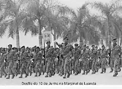 From 1900 to the early 1950s, the Portuguese maintained a separate colonial army in their African possessions, consisting mainly of a limited number of companhias indígenas (native companies). Officers and senior NCOs were seconded from the metropolitan army, while junior NCOs were mainly drawn from Portuguese settlers of the overseas territories. The rank and file were a mixture of black African volunteers and white conscripts from the settler community doing their obligatory military service. Black assimilados were in theory also liable to conscription but in practice only a limited number were called on to serve.[13] With the change in official status of the African territories from colonies to overseas provinces in 1951, the colonial army lost its separate status and was integrated into the regular forces of Portugal itself. The basis of recruitment for the overseas units remained essentially unchanged.