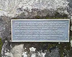 The actual house depicted as the Delta House was originally a residence near the campus in Eugene, the Dr. A.W. Patterson House. Around 1959, it was acquired by the Psi Deuteron chapter of Phi Sigma Kappa fraternity and was their chapter house until 1967, when the chapter was closed due to low membership. The house was sold, remained vacant, and slid into disrepair, with the spacious porch removed and the lawn graveled over. At the time of the shooting, the Phi Kappa Psi and Sigma Nu fraternity houses sat next to the old Phi Sigma Kappa house, on the 700 block of East 11th Avenue.[33] The interior of the Phi Kappa Psi house and the Sigma Nu house were used for most of the interior scenes, but the scenes in Otter and Hoover's bedrooms were filmed on a soundstage. The Patterson house remained vacant after filming ended in 1977 and was demolished in 1986, despite some attempts to preserve it due to its connection to the film.[34] The site (44°02′53″N 123°04′52″W / 44.048°N 123.081°W / 44.048; -123.081) is now occupied by Bushnell University's School of Education and Counseling. A large boulder placed to the west of the parking entrance displays a bronze plaque commemorating the Delta House location. The concluding parade scene was filmed on Main Street in downtown Cottage Grove, about twenty miles (32 km) south of Eugene via Interstate 5.