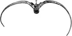 The skeletal reconstruction accompanying the 1908 description restored the missing parts in a fashion similar to Stegosaurus, and Brown likened the result to the extinct armored mammal Glyptodon.[2] In contrast to modern depictions, Brown's stegosaur-like reconstruction showed robust forelimbs, a strongly arched back, a pelvis with prongs projecting forwards from the ilium and pubis, as well as a short, drooping tail without a tail club, which was unknown at the time. Brown also reconstructed the armor plates in parallel rows running down the back; this arrangement was purely hypothetical. Brown's reconstruction became highly influential, and restorations of the animal based on his diagram were published as late as the 1980s.[5][6][7] In a 1908 review of Brown's Ankylosaurus description, the American paleontologist Samuel Wendell Williston criticized the skeletal reconstruction as being based on too few remains, and claimed that Ankylosaurus was merely a synonym of the genus Stegopelta, which Williston had named in 1905. Williston also stated that a skeletal reconstruction of the related Polacanthus by Hungarian paleontologist Franz Nopcsa was a better example of how ankylosaurs would have appeared in life.[8] The claim of synonymy was not accepted by other researchers, and the two genera are now considered distinct.[9]