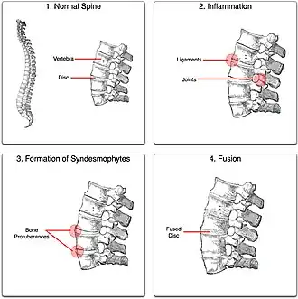 - ^ Haroon N (June 2015). "Ankylosis in ankylosing spondylitis: current concepts". Clinical Rheumatology. 34 (6): 1003–7. doi:10.1007/s10067-015-2956-4. PMID 25935456. S2CID 25930196.