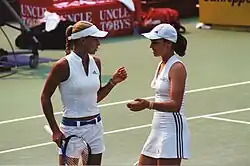 Despite never winning a singles title, she reached No. 8 in the world in 2000. She achieved greater success playing doubles, where she was at times the world No. 1 player. With Martina Hingis as her partner, she won Grand Slam titles in Australia in 1999 and 2002, and the WTA Championships in 1999 and 2000. They referred to themselves as the "Spice Girls of Tennis".[4][5]