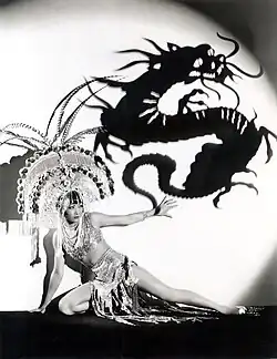 With the promise of appearing in a Josef von Sternberg film, Wong accepted another stereotypical role – the title character of Fu Manchu's vengeful daughter in Daughter of the Dragon (1931).[82] This was the last stereotypically "evil Chinese" role Wong played,[83] and also her one starring appearance alongside the only other well-known Asian actor of the era, Sessue Hayakawa. Though she was given the starring role, this status was not reflected in her paycheck: she was paid $6,000, while Hayakawa received $10,000 and Warner Oland, who is in the film for only 23 minutes, was paid $12,000.[84]