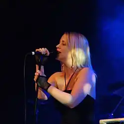 She also contributed vocals to the Finnish electronic rock band K-X-P's 2013 sophomore album, II,[40][41] and featured on the track and music video for "Take A Look At The World" by Ralph Myerz in 2013, having also written the lyrics and melody.[42]