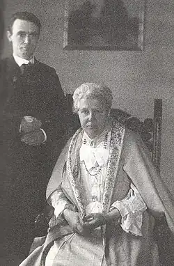 The Rev. Frank Besant was a graduate of Emmanuel College, Cambridge, ordained priest in 1866, but had no living: in 1866 he was teaching at Stockwell Grammar School as second master, and in 1867 he moved to teach at Cheltenham College as assistant master.[11][12] In 1872, he became vicar of Sibsey in Lincolnshire, a benefice in the gift of the Lord Chancellor—who was Lord Hatherley, a Wood family connection, son of Sir Matthew Wood, 1st Baronet.[6] The Besant family, with their two children, Arthur and Mabel, moved to Sibsey, but the marriage was already under strain. As Besant wrote in her Autobiography, "we were an ill-matched pair".[13]