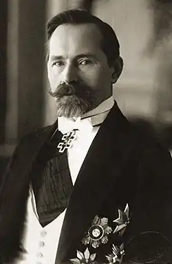 Antanas Smetona (Lithuanian: [ɐnˈtǎːnɐs sʲmʲɛtoːˈnɐ] ⓘ; 10 August 1874 – 9 January 1944) was a Lithuanian intellectual, journalist, and politician. He served as the first president of Lithuania from 1919 to 1920 and later as the authoritarian head of state from 1926 until the Soviet occupation of Lithuania in 1940. Referred to as the "Leader of the Nation" during his presidency,[1] Smetona is recognised as one of the most important Lithuanian political figures between World War I and World War II, and a prominent ideologist of Lithuanian nationalism and the movement for national revival.[2]