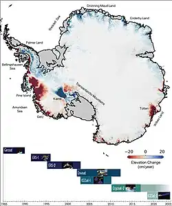 - ^ a b "ICE SHEETS AND SEA-LEVEL RISE". antarctica.gov.au. Australian Antarctic Program. 2 February 2014. Retrieved 27 March 2024.