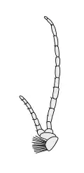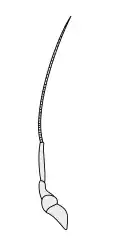 The three basic segments of the typical insect antenna are the scape or scapus (base), the pedicel or pedicellus (stem), and finally the flagellum, which often comprises many units known as flagellomeres.[10] The pedicel (the second segment) contains the Johnston's organ which is a collection of sensory cells.[11]