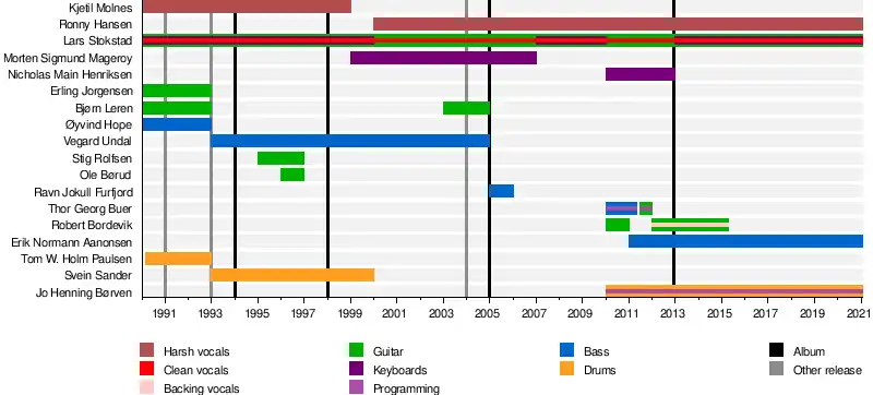 | Lars "Vemod" Stokstad | Guitars, Clean Vocals, Keyboards (1990-2000, 2013-present) | 1990–present | Vaakevandring |