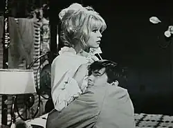 Perkins's final role portraying a psychologically disturbed character in a romantic film was in Two Are Guilty (1963), filmed in France. The film had limited impact upon release.[101] His subsequent project was Une ravissante idiote (1964), co-starring Brigitte Bardot. Perkins became the first American actor to portray a romantic partner opposite Bardot.[102] In later interviews, he expressed discomfort during the production and stated that Bardot had been his least favorite co-star.[71][103]
