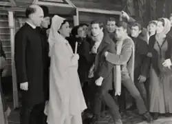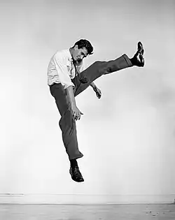 Perkins gained wider recognition in 1954 when he replaced John Kerr in the lead role of Tea and Sympathy on Broadway, directed by Elia Kazan, another friend of his father. In the play, he portrayed Tom Lee, a college student perceived as effeminate, who is "fixed" through a romantic encounter with a woman.[36] The role bore autobiographical parallels for Perkins, and he later described it as one of the most meaningful performances of his career. Despite the play's homophobic themes and resolution, it was one of the first major Broadway productions to depict homosexuality explicitly, and it attracted a significant gay audience.[37] Perkins's performance was well received and considered by many to surpass that of his predecessor.