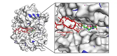 - ^ a b Hu X, Legler PM, Khavrutskii I, Scorpio A, Compton JR, Robertson KL, et al. (February 2012). "Probing the donor and acceptor substrate specificity of the γ-glutamyl transpeptidase". Biochemistry. 51 (6): 1199–1212. doi:10.1021/bi200987b. PMID 22257032.