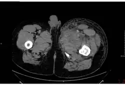 In December 2009, an outbreak of anthrax occurred among injecting heroin users in the Glasgow and Stirling areas of Scotland, resulting in 14 deaths.[24] It was the first documented non-occupational human anthrax outbreak in the UK since 1960.[24] The source of the anthrax is believed to have been dilution of the heroin with bone meal in Afghanistan.[25] Injected anthrax may have symptoms similar to cutaneous anthrax, with the exception of black areas,[26] and may also cause infection deep into the muscle and spread faster.[27] This can make it harder to recognise and treat.