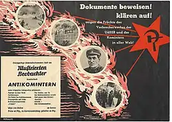 One of the Anti-Komintern's most significant outputs was the 1936 international release Der Weltbolschewismus, in which it connected various anti-communist and anti-semitic conspiracy theories for the consumption of the international audience. The book was not released in Germany itself to avoid conflict between the book's varied accounts with German state propaganda.[12]: 581