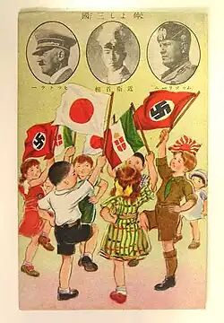 The Anti-Comintern Pact,[1] officially the Agreement against the Communist International[2] was an anti-communist pact concluded between Nazi Germany and the Empire of Japan on 25 November 1936 and directed against the Communist International (Comintern). It was signed by German ambassador-at-large Joachim von Ribbentrop and Japanese ambassador to Germany Kintomo Mushanokōji.[3]: 188–189 Italy joined in 1937 (earlier it had signed the Italo-Soviet Pact[4] directed partly against Hitler), but it was legally recognized as an original signatory by the terms of its entry. Spain and Hungary joined in 1939. Other countries joined during World War II.[5]: 49