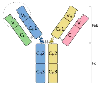 - ^ Muller KM (1998). "The first constant domain (CH1 and CL) of an antibody used as heterodimerization domain for bispecific miniantibodies". FEBS Letters. 422 (2): 259–264. Bibcode:1998FEBSL.422..259M. doi:10.1016/s0014-5793(98)00021-0. PMID 9490020. S2CID 35243494.