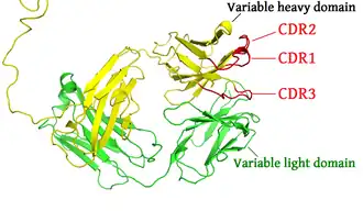 - ^ Li T, Pantazes RJ, Maranas CD (2014). "OptMAVEn--a new framework for the de novo design of antibody variable region models targeting specific antigen epitopes". PLOS ONE. 9 (8) e105954. Bibcode:2014PLoSO...9j5954L. doi:10.1371/journal.pone.0105954. PMC 4143332. PMID 25153121.