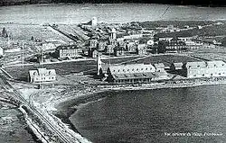 In 1874, it was bought by the Anticosti Island Company and they founded the villages at English Bay and Fox Bay. Most of the inhabitants, however, continued to be the few keepers of the island's many lighthouses.[3] Because of the number of shipwrecks around the island, stores of provisions were also maintained around the island for sailors who might be washed ashore.[3] In 1882, the Parish of Notre-Dame-de-l'Assomption was founded, a term referring to Cartier's name for the island. In 1884, the island became property of the Stockwell brothers who formed a forestry company two years later. But they were unsuccessful and the company lasted only five years.[4] By the 1890s, the fish and wildlife of the island had been almost eradicated through european overhunting.[2]