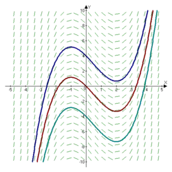 In calculus, an antiderivative, inverse derivative, primitive function, primitive integral or indefinite integral[Note 1] of a function f is a differentiable function F whose derivative is equal to the original function f. This can be stated symbolically as F' = f.[1][2] The process of solving for antiderivatives is called antidifferentiation (or indefinite integration), and its opposite operation is called differentiation, which is the process of finding a derivative. Antiderivatives are often denoted by capital Roman letters such as F and G.